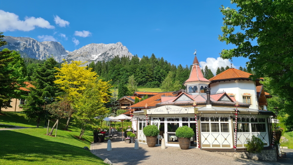 Cross the low meadows dotted with barns to Ehrwald’s twin resort Lermoos, where a cable car is an option to skip most of the ascent. Above the Grubigalm our path starts to drop, steeply in places and around a surprise cliff-edge, to the Fernpass and on down to the pretty lakeside village of Fernsteinsee on good tracks. Return to Ehrwald on the efficient and regular bus service.