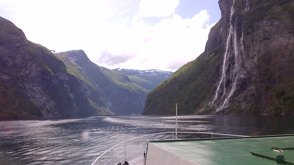 A special feature of Norwegian travel is the fjord, the sea loch, deep green slopes either side. Reaching the right fjord by public transport and seeing it from a useful angle, needs some advance planning, and even more so if the aim is to avoid Summer crowds. As well as fjords at the coast, there are ferries slightly inland and ferries along inland lakes (very spectacular). We will not cover the town ferries, particualry good at Oslo and Trondheim; these also give a taste of Norwegian life on the water and are easily navigated once in those cities.