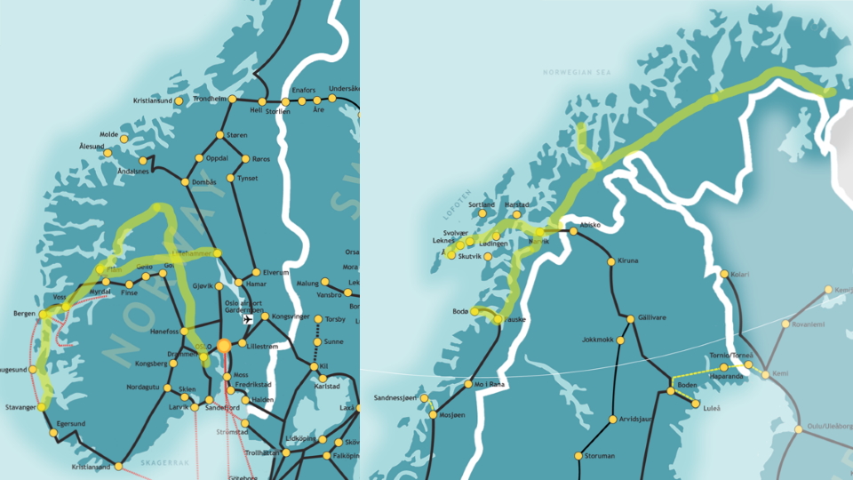This is the long line on Norway’s Southern coast, linking Kristiansand and Stavanger to Oslo – plus many small towns that are popular holiday spots in Summer. It is largely coastal. Recently the line has seen bus replacements during works. (We do not know the line in its major part between Sandefjord and Stavanger. Our plan is a trip all the way from Stavanger, through Oslo, to Stockholm.)
