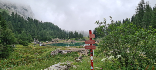 The Bohinj basin is a highlight. We remember a cloud inversion one day that covered the lake: spectacular from above at Dom na Komni. All of our routes run above Lake Bohinj for a while.