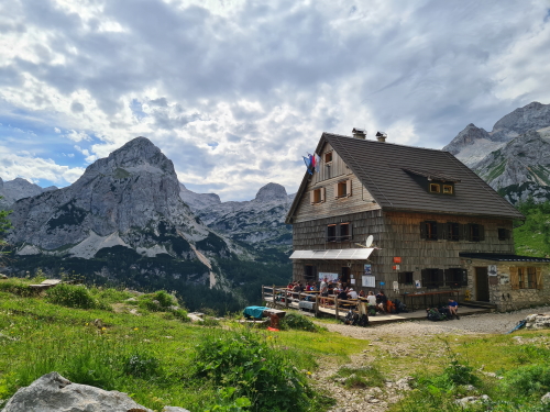 The Julian Alps is a region notable for its many mountain huts. A typical edifice is a double-storied ‘house’ (dom) with a pitched roof. Shingle tiles – wooden – cover the outside walls; shutters sit either side of the windows.