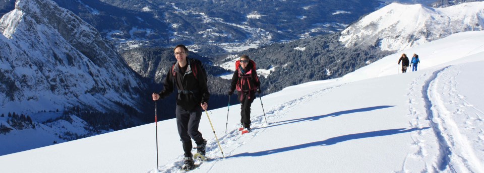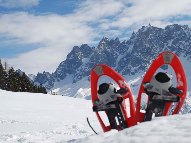 The beauty of the Alps is that the mountain villages and their hotels, restaurants and ski infrastructure can be used to full advantage by snowshoers. Snowshoeing and skiing are not substitutes for each other but rather they complement each other in the same beautiful white mountains. Snowshoeing carries an air of exploration, opening up intimate and stunning views to the walker that previously only the off-piste skier could reach.