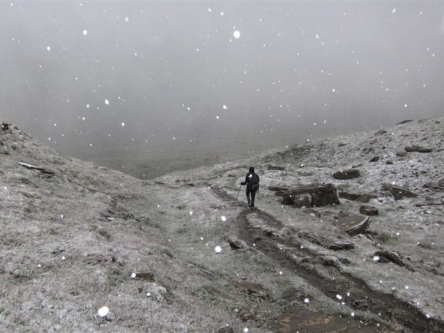 During each summer season, snow falls on typically two or three or more occasions. It tends to go away equally quickly and tends not to be deep at the altitude of the TMB, but for the time it remains it can make navigation even more challenging. Under a cover of snow, ground features are hidden and reliance on map and compass skills is key.